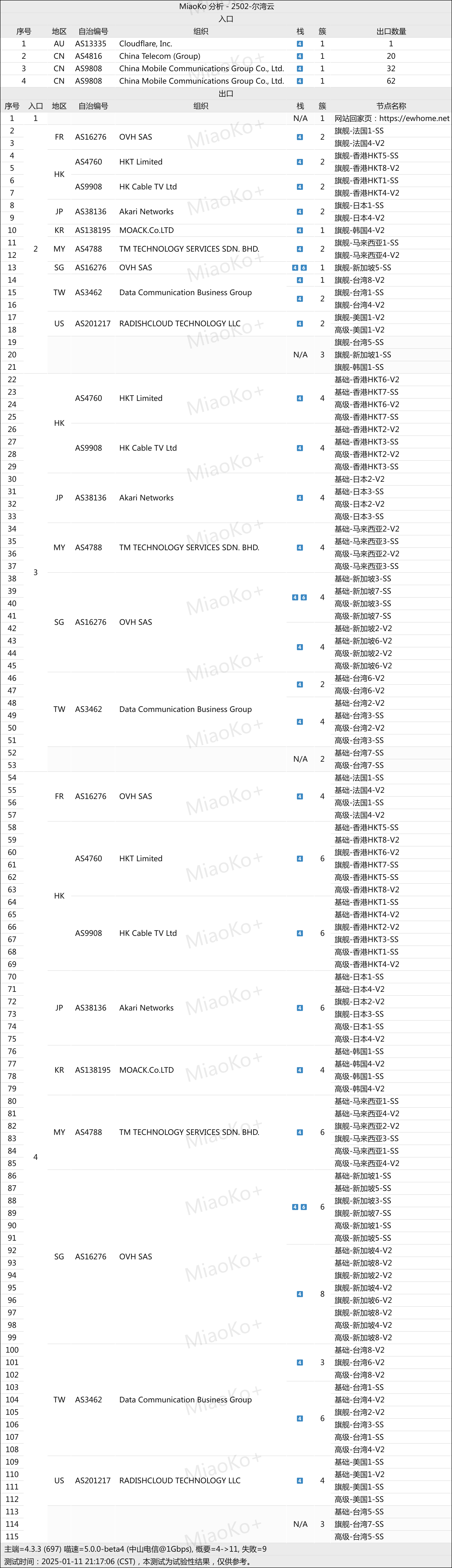 - 全部节点线路采用隧道中转优化及 IPLC 高速专线,最大峰值可达1000Mbps;