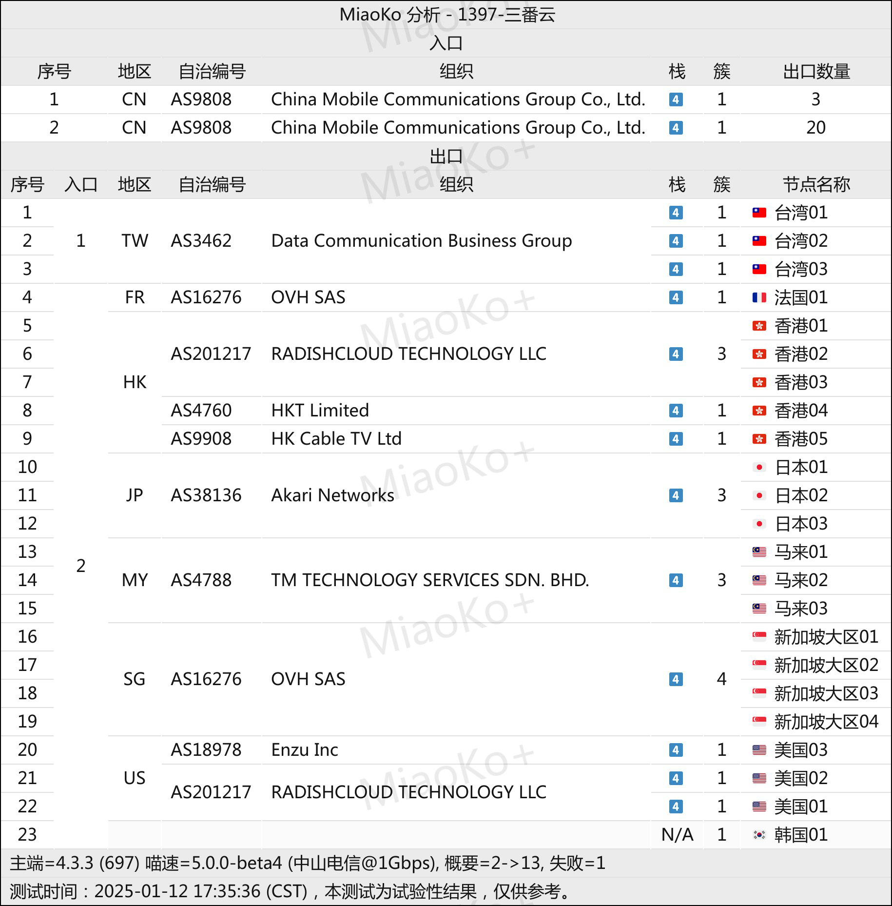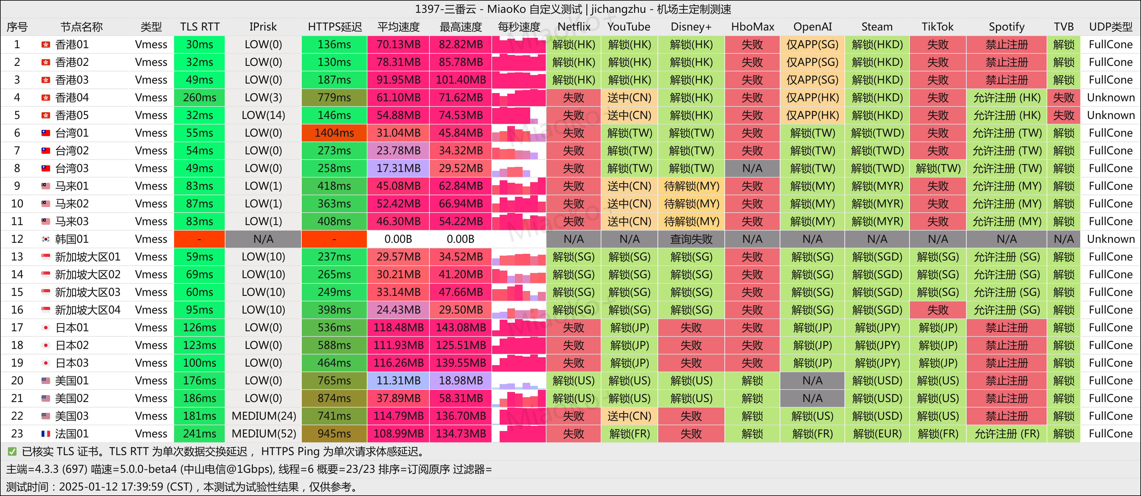 - 全部节点线路采用隧道中转优化及 IPLC 高速专线,最大峰值可达1000Mbps;